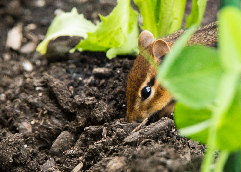 Now introduced to the world, weaned, and savvy(ish) about some good feeding and hiding spots, the new chipmunks have been choosing their new homes this week. Some may have ventured out of the garden, but it looks like a couple have chosen to make their burrows within its borders.