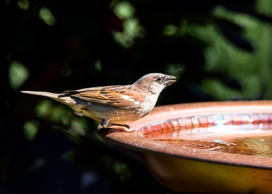 Every morning, in addition to setting out seeds and nuts in the feeders, my older daughter and I fill various bird baths and dishes with ice water, so the garden birds and animals have something to drink when the heat’s at its worst. We humans hydrate and eat ice cream and swim…but sometimes the only thing to do is retreat into the man-made shade and air conditioning. The least we can do for those who can’t is offer some water.